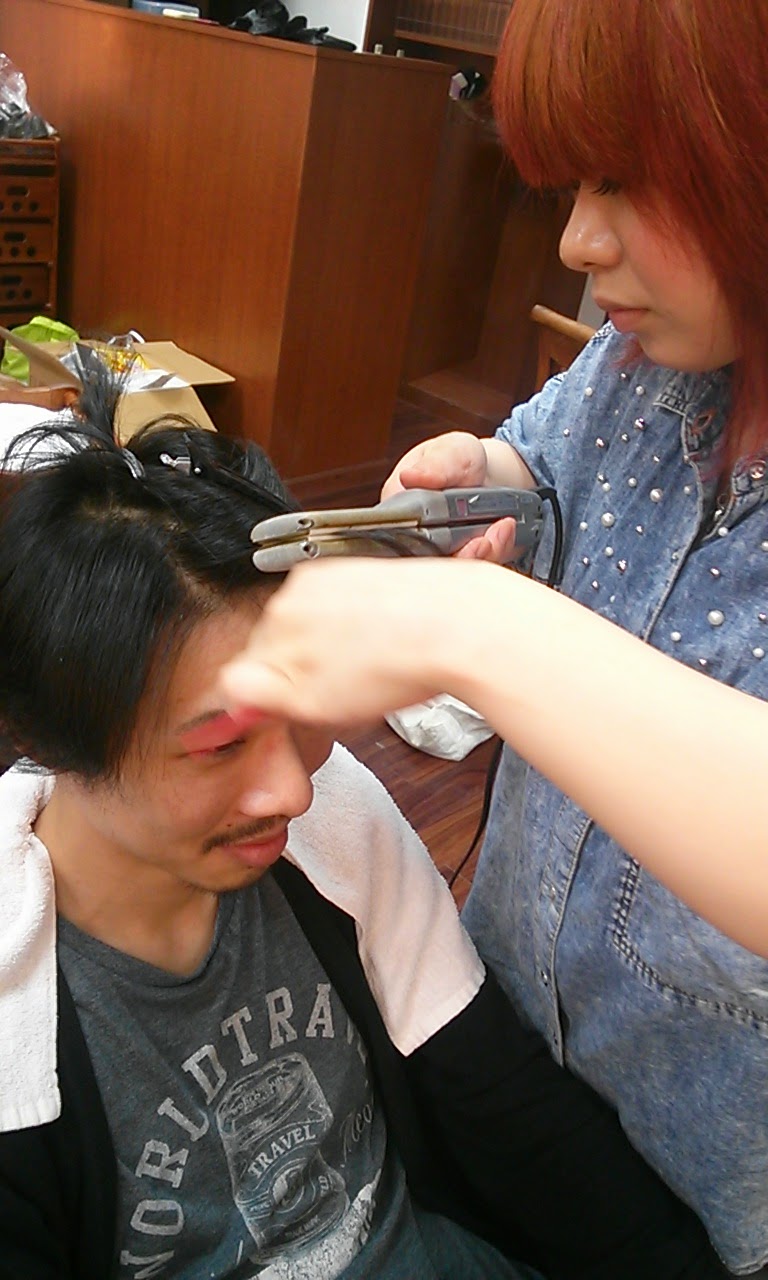 5月27日 火曜日 2014/5/28 未分類 6/27日 火曜日はマニキュア塗布この日の担当、松柴、笹川、泉 新人3人 6人全員がマニキュアモデルだいぶスピードアップできましたそしてモデルのワンレンブロー、サロンで猫の手になります 笑松柴店長の短い耳周りもちゃんとアイロンもできました