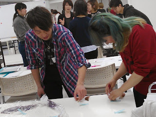 メーカーARIMINO/杉崎インストラクターによるベーシックカラーセミナーです。2014アシスタントも参加しての勉強会です。 彩度、明度、補色など、毛束を染めての実験に新人たちは楽しそうでした。 専門学校では教わらなかったカラーの勉強にキラキラ輝いていました。 2014アシスタントの面倒見の良さもほほえましかった1日でした。